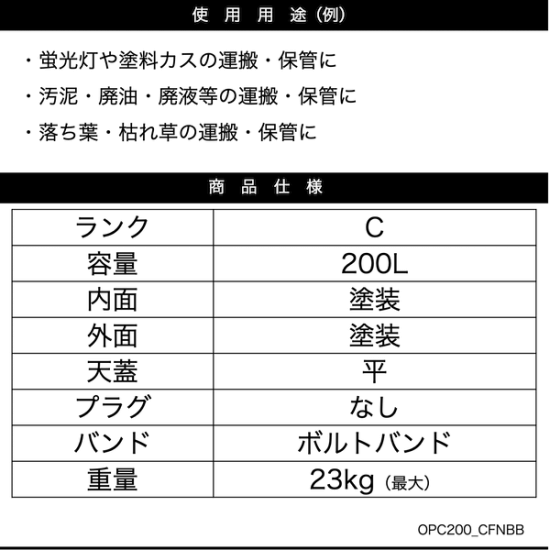 オープンドラム缶 再生品(ボルトバンド)中鉄地 平蓋 鋼製 200L Cランク OPC200_SFNBB