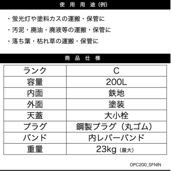 メーカーと共同開発した、日本製の更生ドラム缶です。色などの指定はできませんが、S〜Bランクと同等品で、十分使用できる商品です。